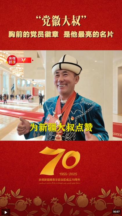 總臺記者在現(xiàn)場見到了來參會的新疆克州阿克陶縣木吉鄉(xiāng)的先進模范阿布都加帕爾·猛德。幾年前,阿布都加帕爾·猛德因一段視頻而備受關注。視頻中他幫助陷入泥潭的游客車輛脫困,游客提出給錢作為報酬,他謝絕了,并亮出胸前的黨員徽章。他也因此被網(wǎng)友稱為“黨徽大叔”。