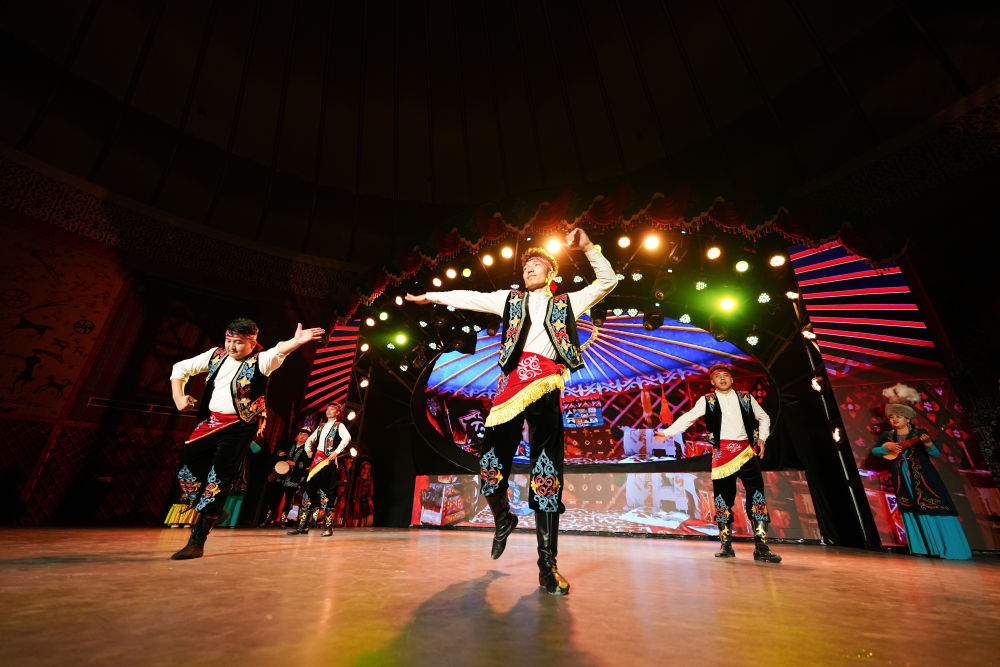 2025年5月1日,《新疆維吾爾自治區(qū)瑪納斯非物質(zhì)文化遺產(chǎn)保護(hù)條例》正式實施,為保護(hù)這部列入聯(lián)合國教科文組織非遺名錄的柯爾克孜族英雄史詩提供了法規(guī)遵循。這是2025年4月22日,演員在位于新疆阿圖什市的瑪納斯史詩大劇院為游客表演。