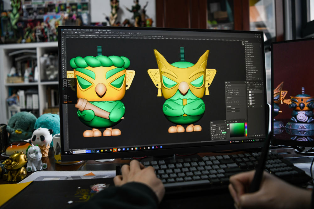 2025年3月1日,文創(chuàng)產(chǎn)品策劃運營師曾舟在位于四川成都的辦公室內(nèi)完善文創(chuàng)產(chǎn)品細(xì)節(jié)。他以三星堆青銅神樹、青銅縱目面具、青銅獸面等文物為創(chuàng)作藍(lán)本,結(jié)合潮玩元素設(shè)計的文創(chuàng)作品廣受歡迎。“我想做的不是玩具快消品,而是有內(nèi)容、有溫度、有意義的文化IP,讓年輕一代隨手摸到沉淀千年的文化?!痹壅f。