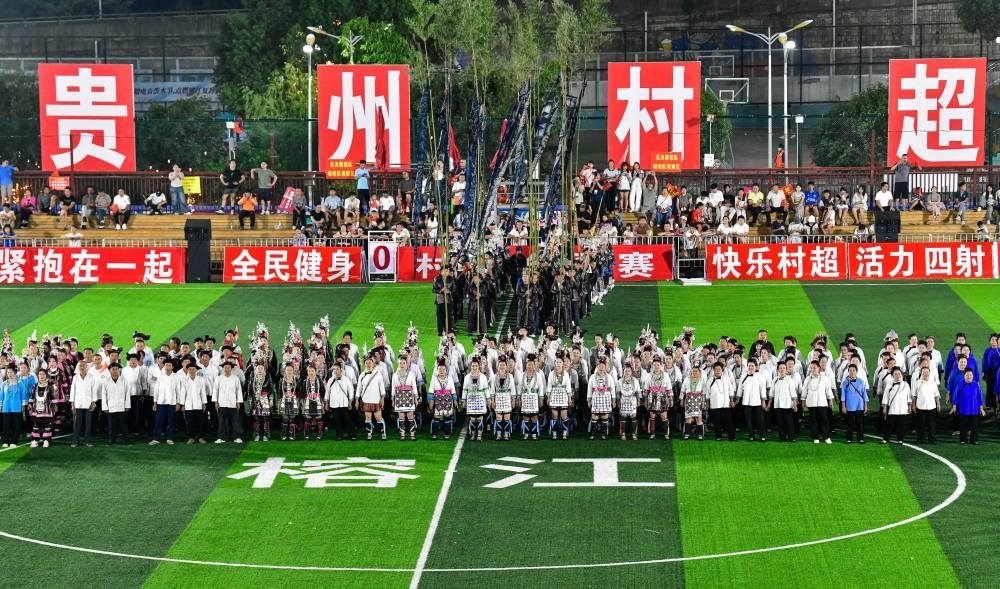 2025年8月23日,村民們在貴州“村超”球場演唱侗族大歌。當日,2025年首屆“村超”全國賽總決賽在貴州榕江縣“村超”球場舉行。賽事期間同時舉辦豐富多彩的民族歌舞展演、無人機表演、大型煙花秀,吸引數(shù)萬觀眾現(xiàn)場觀賽。近年來,貴州“村超”“村BA”等草根賽事持續(xù)升溫,巧妙融合體育競技、民族文化與文旅消費,打造“體育+”模式,撬動鄉(xiāng)村流量與經(jīng)濟增量,賦能鄉(xiāng)村振興。