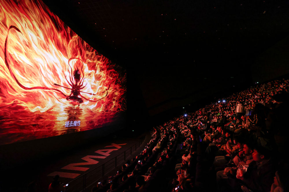 2025年2月25日,觀眾在貴陽越界影城IMAX影廳內(nèi)觀看電影《哪吒之魔童鬧海》。動畫電影《哪吒之魔童鬧海》自1月29日上映后票房一路高歌猛進,僅用8天便登頂中國影史票房榜,隨后成為全球單一市場票房冠軍、全球動畫電影票房冠軍。2025年以來,國家電影局等相繼啟動“跟著電影品美食”“跟著電影去旅游”“中國電影消費年”活動,充分發(fā)揮電影對提振消費的積極作用;各地文旅部門等通過發(fā)布觀影消費券、舉辦主題活動等形式推動影旅融合,發(fā)展票根經(jīng)濟。