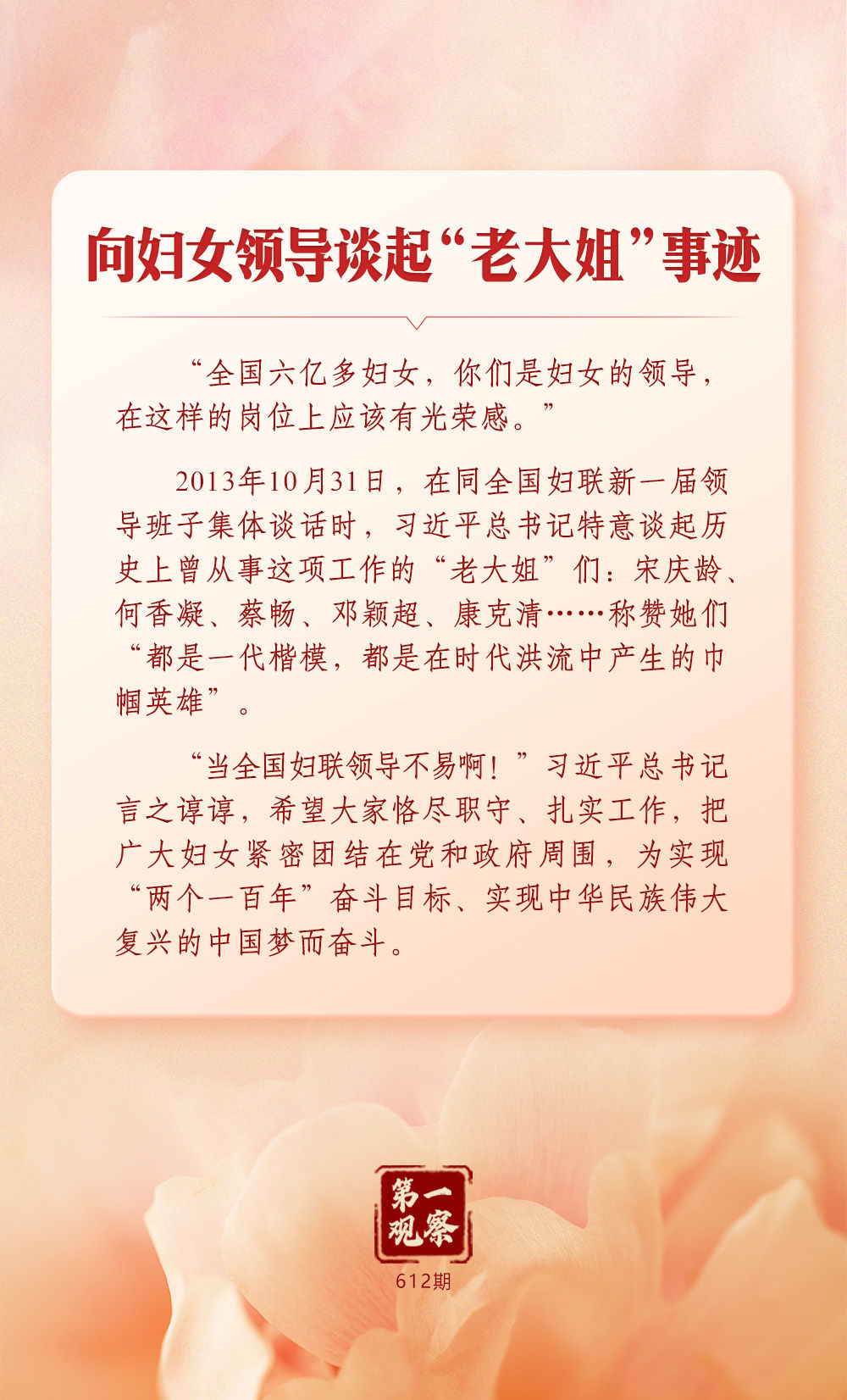 習(xí)近平總書記始終心系婦女事業(yè)發(fā)展。在全球婦女峰會即將召開之際,讓我們一道深刻體悟這份一以貫之的牽掛與重視。