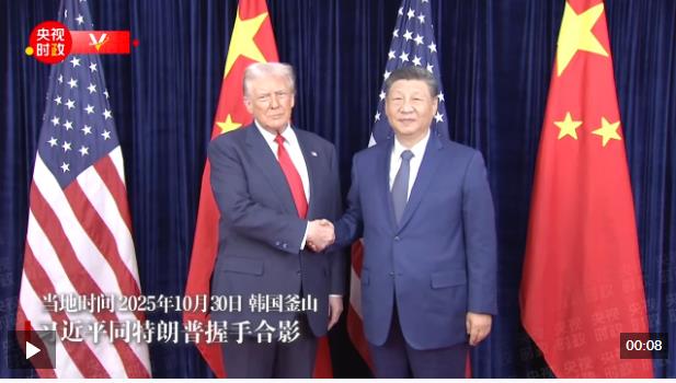 當(dāng)?shù)貢r(shí)間10月30日中午,中美元首會(huì)晤開(kāi)始前,習(xí)近平同特朗普握手合影。