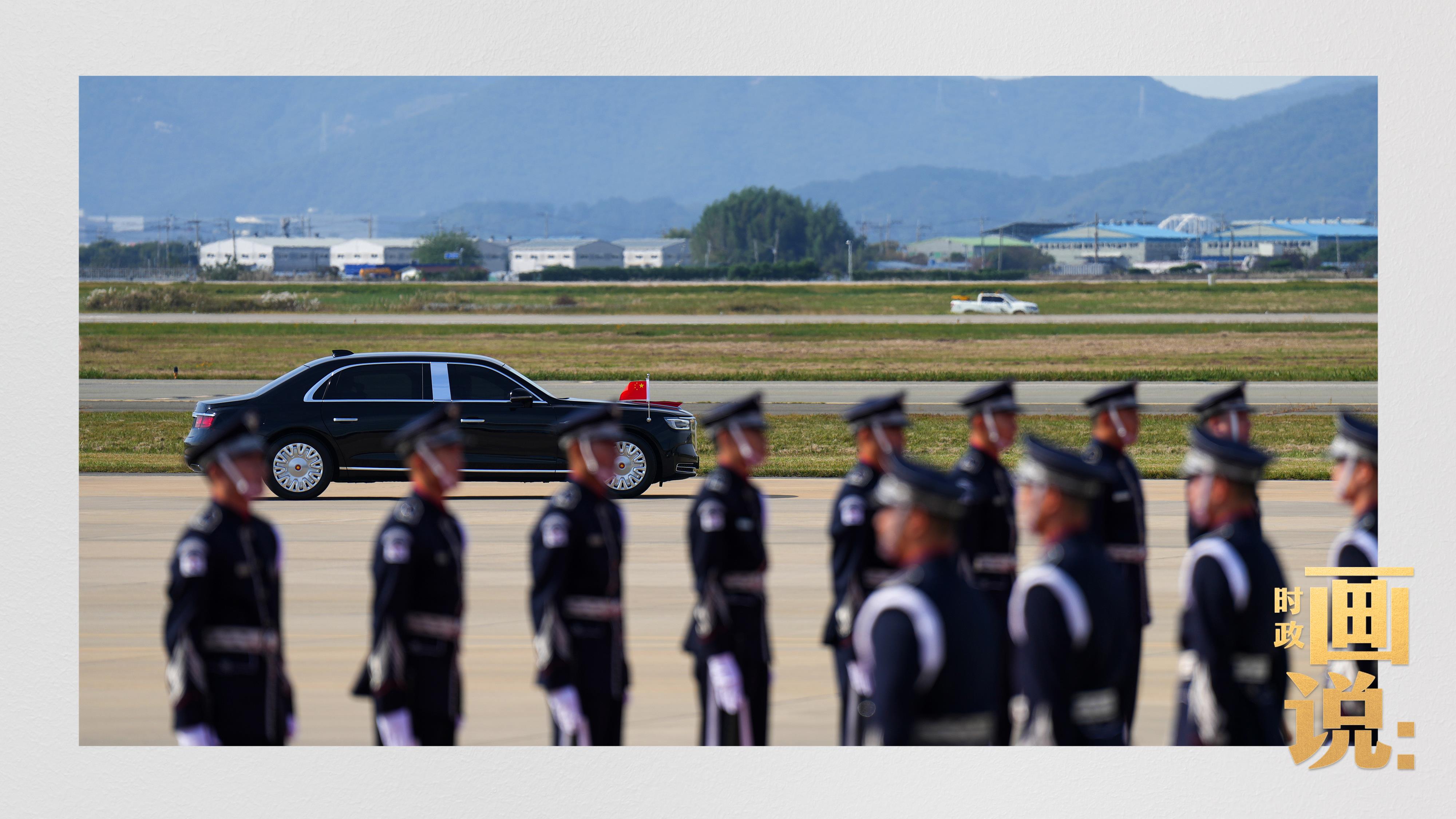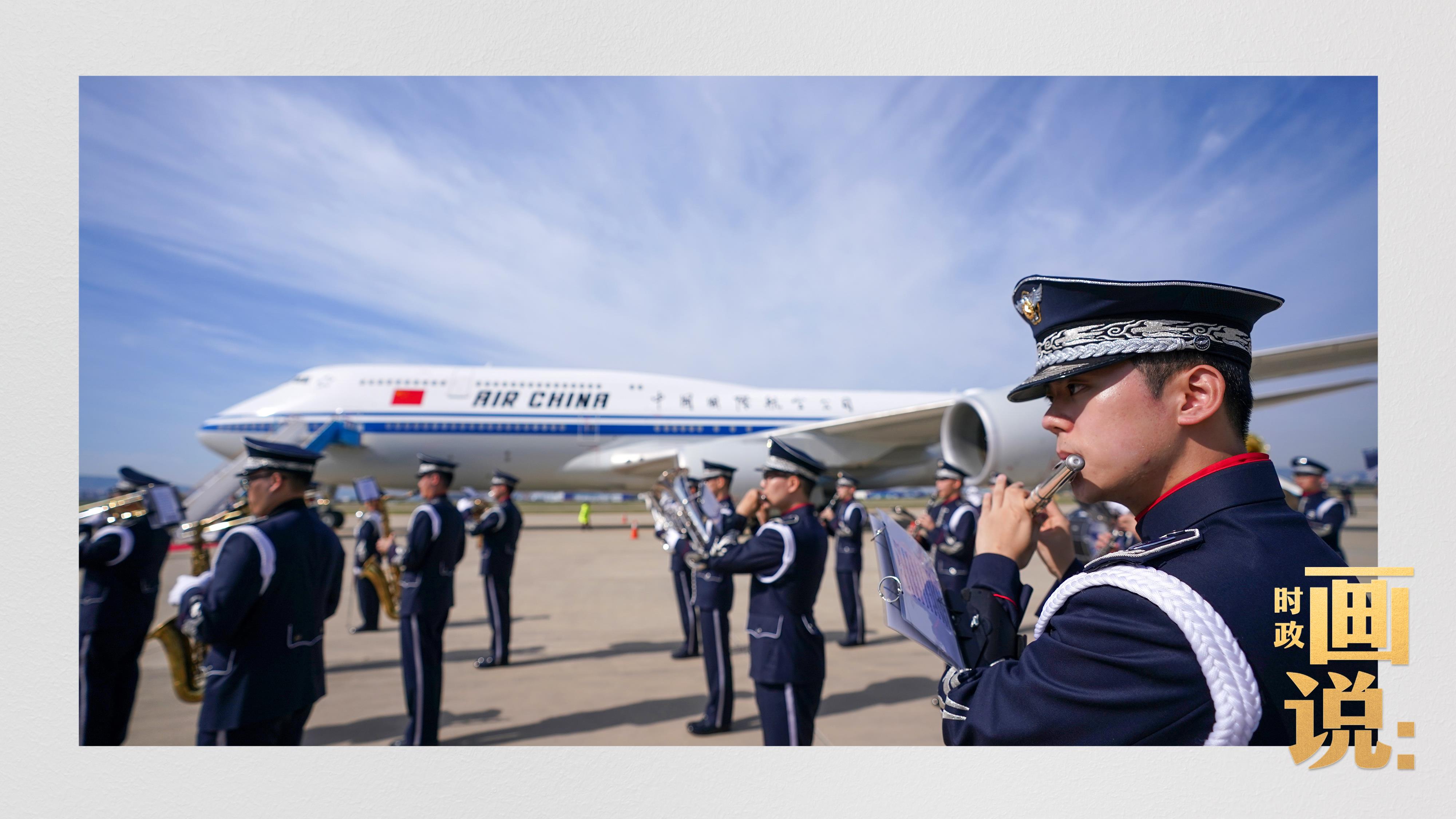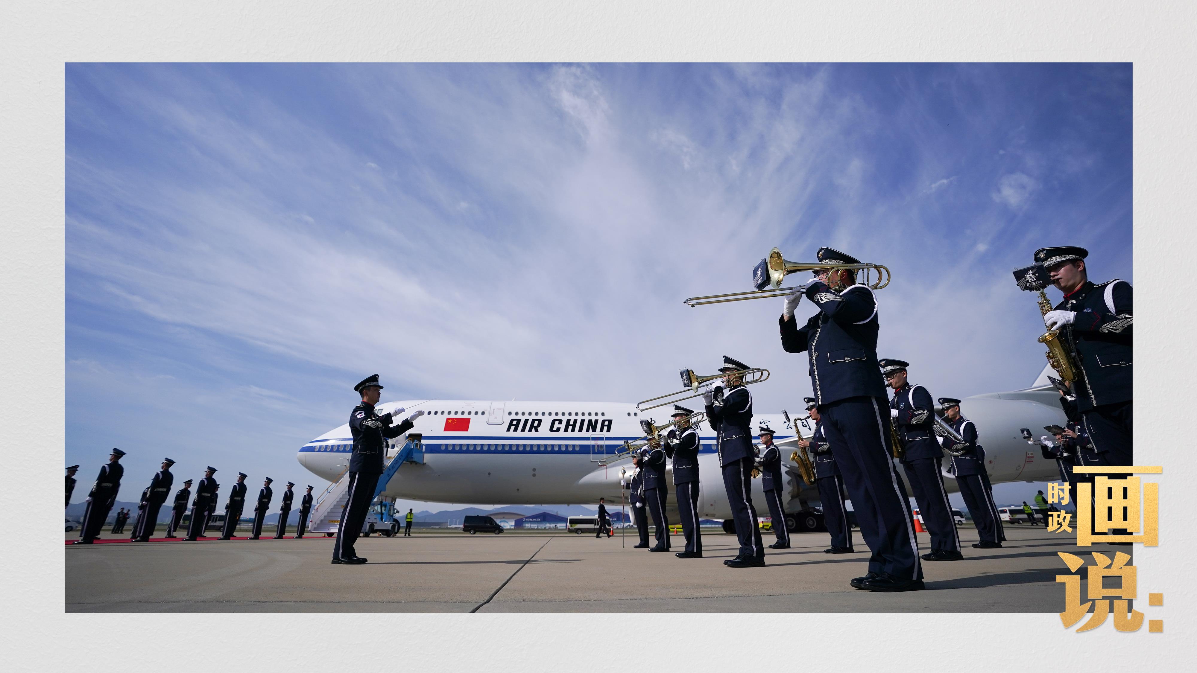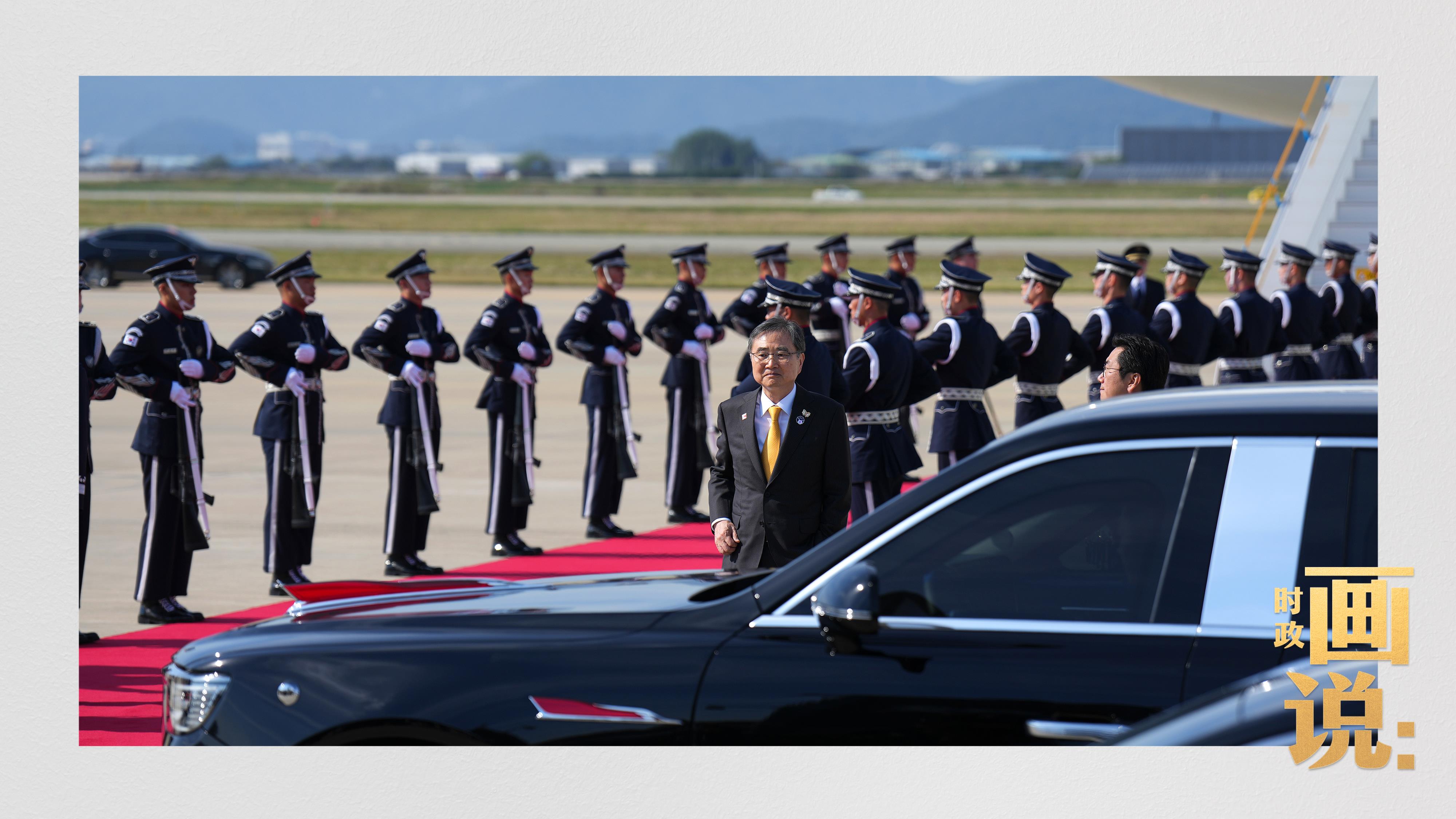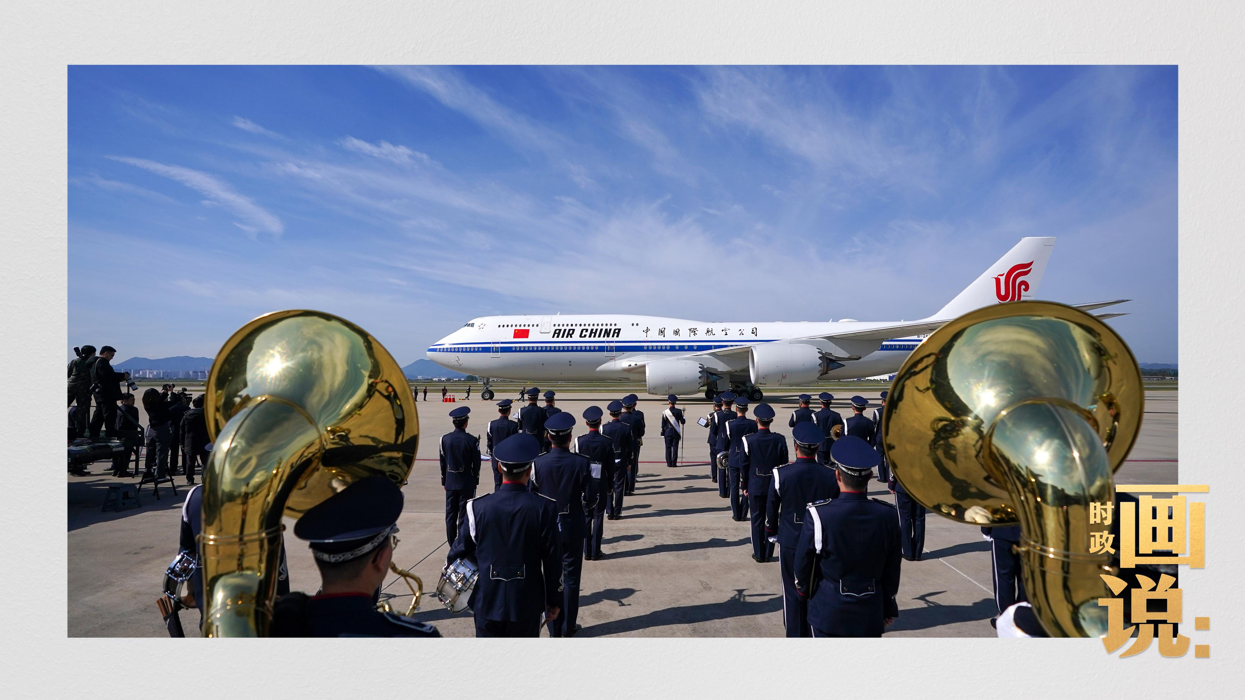 習(xí)近平抵達(dá)釜山金海國際機(jī)場時(shí),韓國外長趙顯等高級(jí)官員熱情迎接。禮兵分列紅地毯兩側(cè)致敬,軍樂團(tuán)演奏行進(jìn)樂,機(jī)場鳴放21響禮炮。