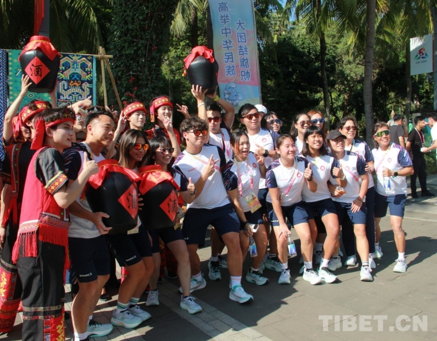 中國(guó)西藏網(wǎng)訊 11月26日,第十二屆全國(guó)少數(shù)民族傳統(tǒng)體育運(yùn)動(dòng)會(huì)民族大聯(lián)歡活動(dòng)在海南省三亞市舉行。活動(dòng)圍繞“民族大聯(lián)歡·天涯共此時(shí)”主題,分為歡迎儀式、游園部分、聯(lián)歡環(huán)節(jié)三個(gè)部分。其中,聯(lián)歡環(huán)節(jié)進(jìn)行了由《心心相映》《山水相連》《熱情相擁》三個(gè)篇章組成的盛大文藝演出。(中國(guó)西藏網(wǎng) 記者/劉莉)