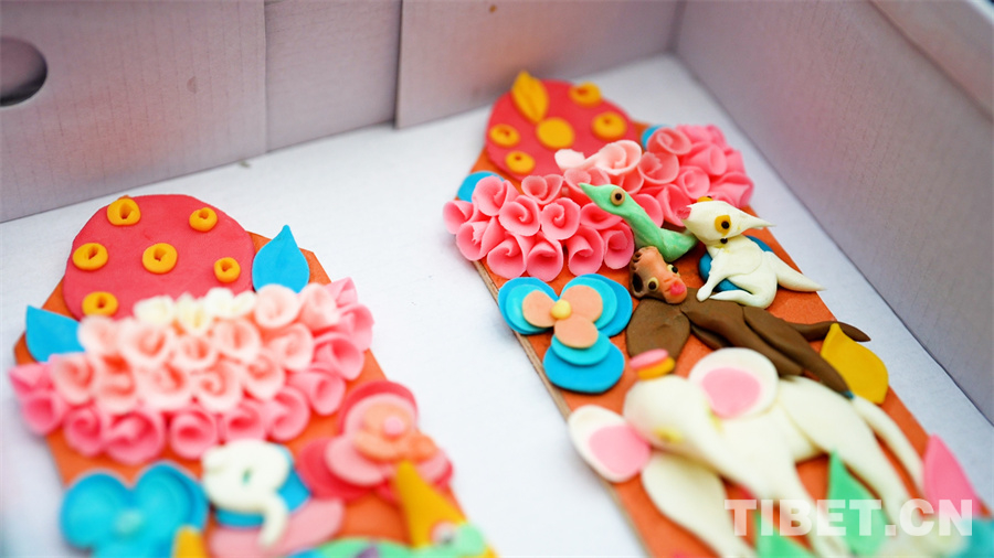 羅布大叔的老家在日喀則市仁布縣普松鄉(xiāng),他制作酥油花已經有20多年的時間了。在過完日喀則農事新年后,他便在拉薩擺攤售賣酥油花?!安貧v新年是我們傳統(tǒng)節(jié)日中最隆重的節(jié)日,家家戶戶在新的一年里都想有一個吉祥如意的好兆頭,所以這段時間在拉薩的生意特別好。酥油花的制作是一項傳統(tǒng)技藝,不僅是我養(yǎng)家糊口的途徑之一,也是文化的不斷傳承?!绷_布說,“我的新年愿望很簡單,就是希望能夠過個好年!”