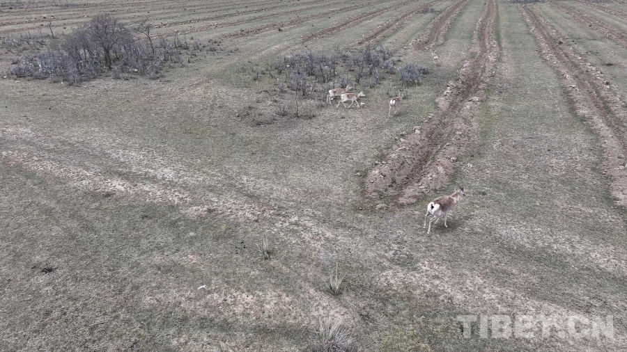 圖為無人機捕捉到的珍貴的野生普式原羚影像,它們的夏季被毛呈棕黃色,可以較好地融入周邊環(huán)境,同時性格警覺,對風吹草動都很敏感 青海省文旅廳供圖