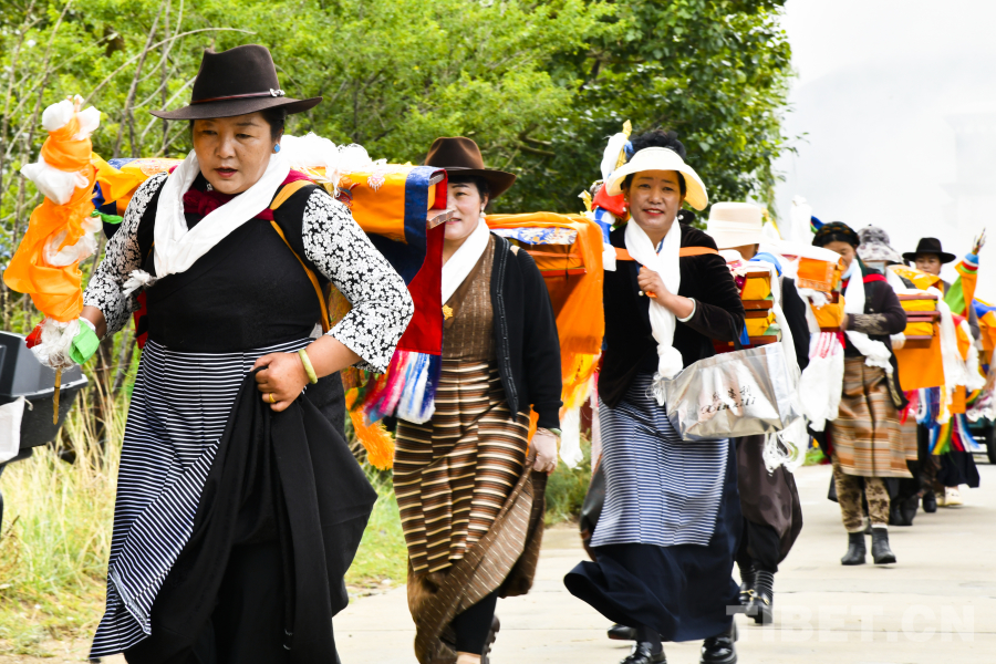 中國(guó)西藏網(wǎng)訊 望果節(jié),是流行于西藏的傳統(tǒng)民俗,國(guó)家級(jí)非物質(zhì)文化遺產(chǎn)之一?!巴笔侵盖f稼,藏語(yǔ)叫“望卡”或“興卡”,“果”是轉(zhuǎn)圈的意思,即繞著豐收在望的莊稼轉(zhuǎn)圈,是西藏農(nóng)區(qū)歡慶豐收的民俗。7月28日,在西藏自治區(qū)拉薩市曲水縣才納鄉(xiāng),村民們身著新裝、手提大小飯盒,背上還背著酥油茶和青稞酒,開(kāi)始望果節(jié)第一日的轉(zhuǎn)田游行,感謝大自然給人們帶來(lái)了風(fēng)調(diào)雨順的好年景。(中國(guó)西藏網(wǎng) 記者/趙振宇)