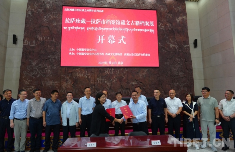本次展覽由中國藏學(xué)研究中心主辦,中國藏學(xué)研究中心圖書館、西藏文化博物館和西藏自治區(qū)拉薩市檔案館共同承辦。開幕式上,中國藏學(xué)研究中心圖書館與拉薩市檔案館簽署《藏文古籍檔案文獻數(shù)據(jù)共享與開發(fā)利用合作協(xié)議》。(中國西藏網(wǎng) 記者/周晶)