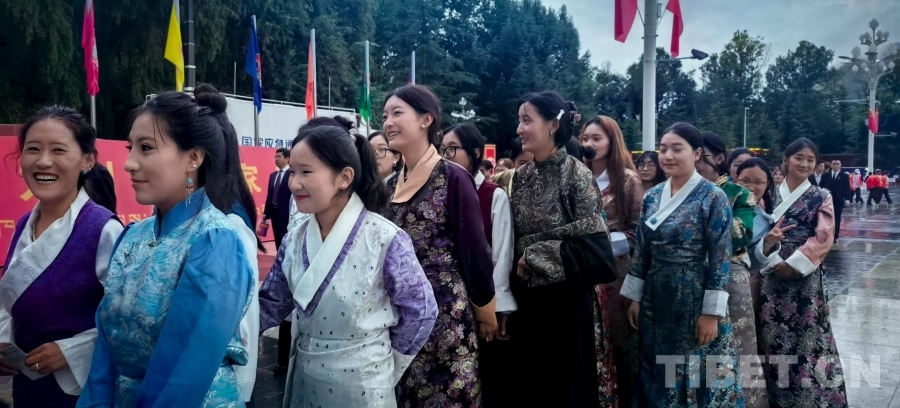 圖為西藏大學(xué)師生入場(chǎng) 攝影:劉莉