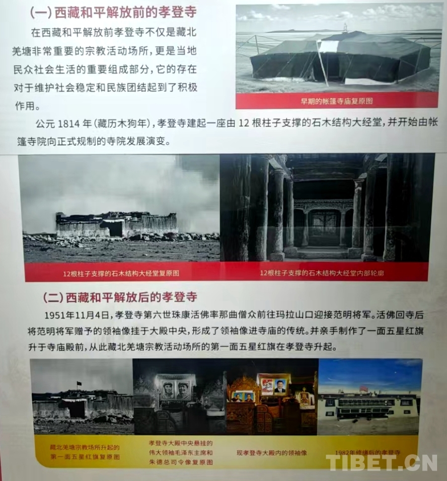 走進孝登寺,主殿正中央懸掛的領袖像莊嚴醒目。據孝登寺管委會副書記、主任羅布旺秋介紹,1951年,范明將軍率解放軍途經那曲時,六世珠康活佛力排眾議前往馬拉山迎接。范明將軍向僧眾宣講黨的民族宗教政策,并向六世珠康活佛贈送了毛主席和朱總司令畫像。此后,六世珠康活佛將領袖像敬懸于大殿正中,這一傳統(tǒng)延續(xù)至今。他還親手制作并升起了藏北寺廟中的第一面五星紅旗。