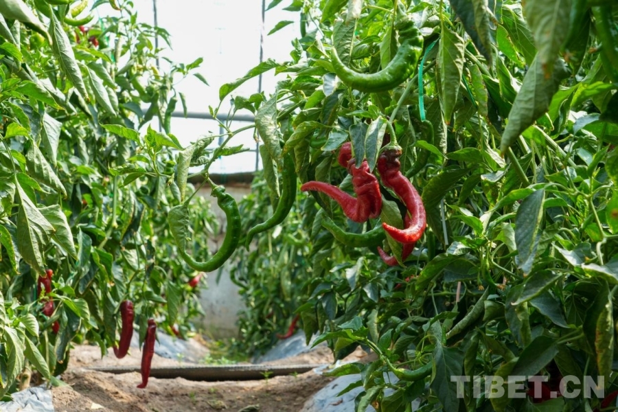 圖為噶爾縣生態(tài)農業(yè)產業(yè)園區(qū)的溫室大棚內種植的龍椒 攝影:邊子捷