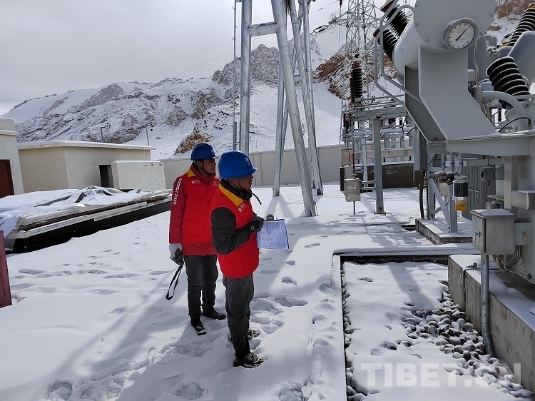 圖為西藏阿里供電公司變電中心工作人員雪后進行隱患排查工作 攝影:阿旺朗杰
